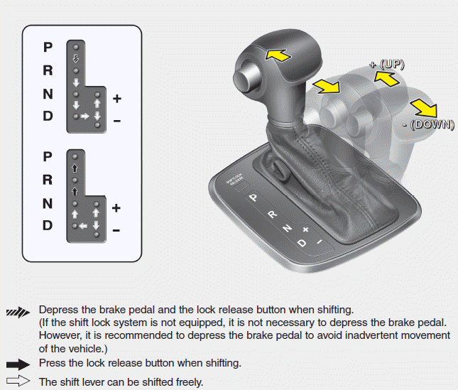 (Драйв) диапазон работы, нажмите сдвиг