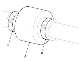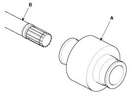 Осторожно отделите динамический демпфер (A) от вала (B).