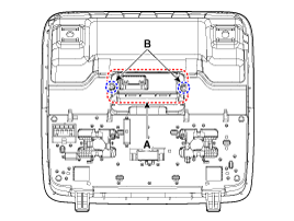 Снимите кнопку eCall (A) после ослабления крепежных винтов (B).