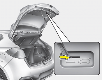 Ваш автомобиль оборудован аварийной Рычаг блокировки двери багажного отделения расположен в нижней части задней двери. Когда кто-то случайно заперт в багажное отделение. Задняя дверь может открыть, выполнив следующие действия: