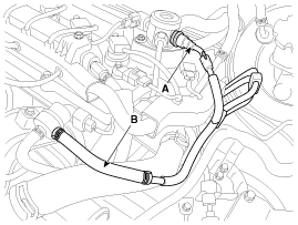 Снимите верхний шланг радиатора (А) и нижний шланг (В).