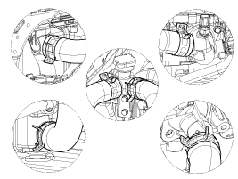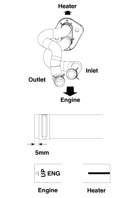 Отсоедините монтажный хомут и снимите шланг отопителя (А).