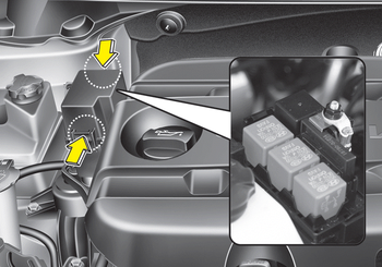 После проверки блока предохранителей в моторный отсек, установите надежно закройте крышку блока предохранителей. Если не, утечка воды может привести к поражению электрическим током неудачи.