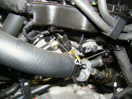 Ослабьте установочные болты кронштейна проводки двигателя (А).