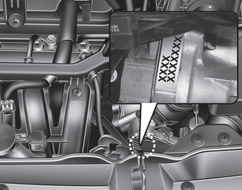 Номер двигателя выбит на блок двигателя, как показано на рисунке.
