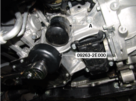 Снимите масляный фильтр (A) с помощью SST (09263-2E000, ключ для масляного фильтра).
