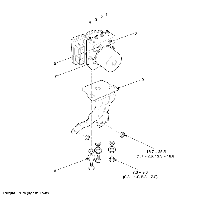 7. Модуль управления ESP (HECU) 8. Демпфер 9. Кронштейн |
