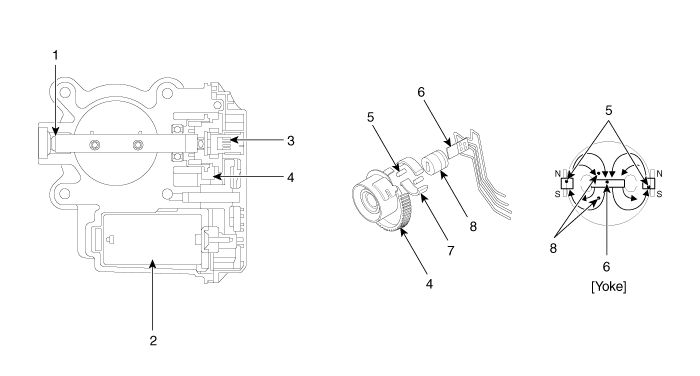 2. Двигатель постоянного тока 3. Бесконтактный датчик холла 4. Шестерня |