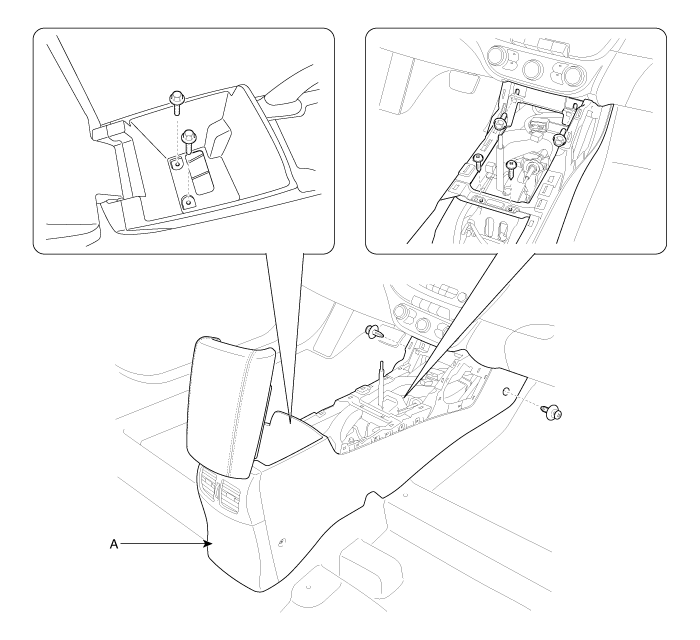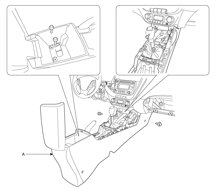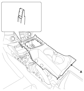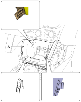 С помощью отвертки или съемника снимите декоративную накладку консоли (A).