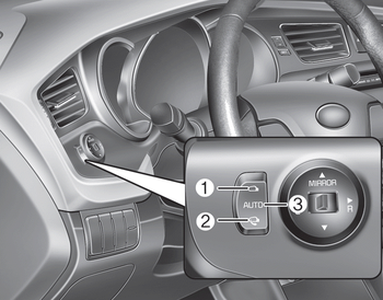 Наружное зеркало заднего вида можно сложить или раскладывается нажатием переключателя, как ниже.