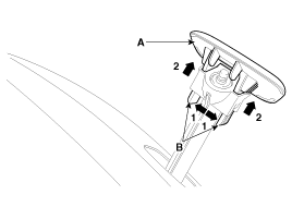 Затем снимите крышку форсунки омывателя фар (А), расширив оба фиксатора.
