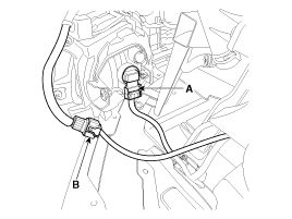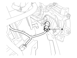 Отсоедините разъем противотуманных фар (А) и передний датчик системы помощи при парковке.