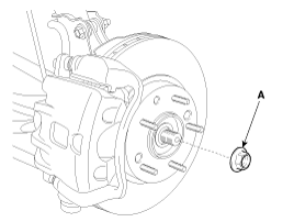 Снимите переднее колесо и шину (А) с передней ступицы.