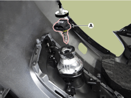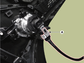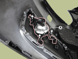 Снимите разъем передней противотуманной фары (А) с переднего бампера.