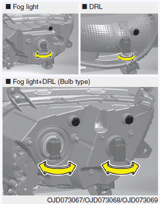 4. Выньте патрон лампы из корпус, повернув счетчик гнезда по часовой стрелке, пока выступы на гнезде совместите с прорезями на корпусе.