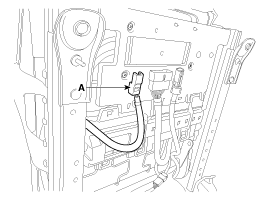 Отсоедините проводку разъема замка переднего ремня безопасности (А).