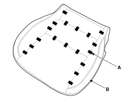 Снимите чехол подушки переднего сиденья (А) с рамы переднего сиденья.