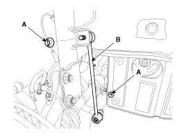 Снимите стойку стабилизатора (А), ослабив гайки (В) и (С).
