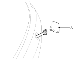 Снимите крышку форсунки омывателя фар (А).