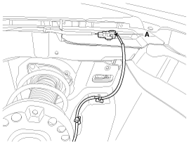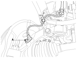 Отсоедините разъем датчика скорости переднего колеса (А), а затем снимите