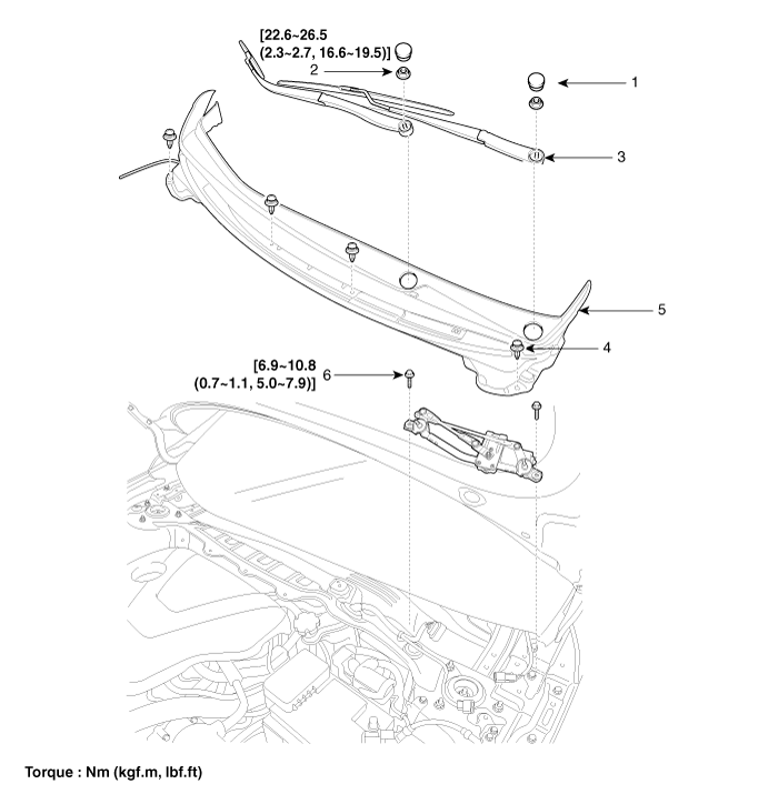 6. Болт 7. Электродвигатель стеклоочистителя и рычажный механизм в сборе. |