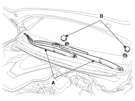 Снимите уплотнительную планку и верхнюю крышку капота (A) после снятия 4