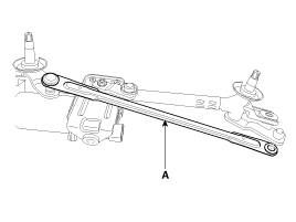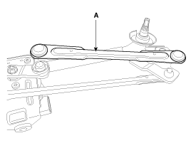 Снимите нижнюю тягу (А) с кривошипа электродвигателя стеклоочистителя.