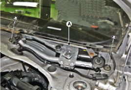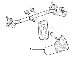 Снимите двигатель стеклоочистителя ветрового стекла и рычажный механизм (А) после снятия