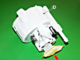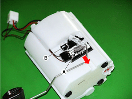 Снимите датчик уровня топлива (А), сдвинув его вниз после освобождения.