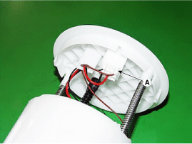 Снимите датчик уровня топлива (А), сдвинув его вниз после освобождения.