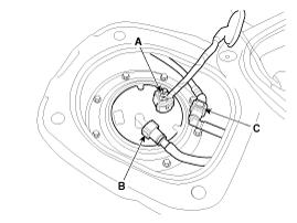 Отсоедините разъем топливного насоса (А).
