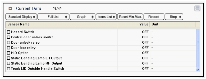 Выберите «Текущие данные», если вы хотите проверить текущие данные аварийного выключателя.