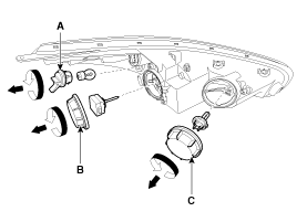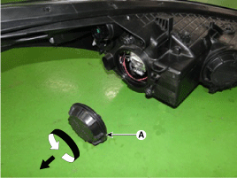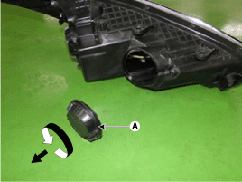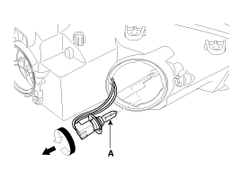 Поверните патрон лампы (А) против часовой стрелки и снимите его с фары.