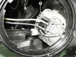 Снимите воспламенитель и газоразрядную лампу (A).
