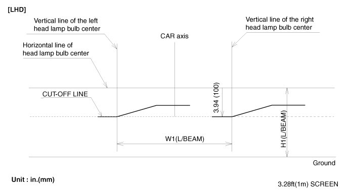 центры ламп) и горизонтальная линия (горизонтальная линия, проходящая через