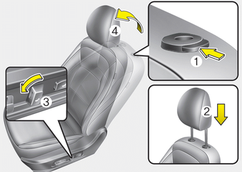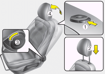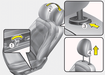 3. Нажмите кнопку фиксатора подголовника (3). потянув подголовник вверх (4).