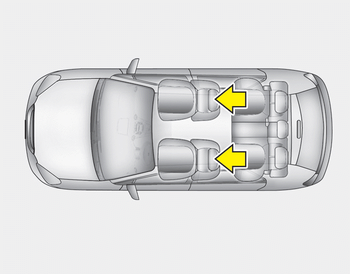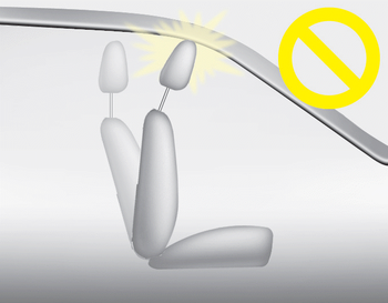 Если откинуть спинку сиденья в сторону спереди с подголовником и подушка сиденья поднята, голова ограничение может соприкасаться с солнцезащитный козырек или другие части транспортное средство.