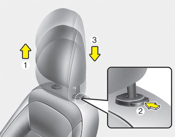 Чтобы поднять подголовник, потяните его вверх желаемое положение (1). Чтобы опустить подголовник, нажмите и удерживайте кнопку разблокировки (2) на опоре подголовника и опустите подголовник в нужное положение (3).
