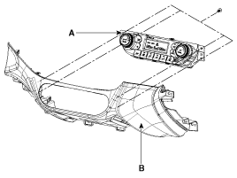 Снимите контроллер кондиционера отопителя (A) с нижней центральной панели передней панели.