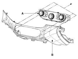 Снимите контроллер кондиционера отопителя (A) с нижней центральной панели передней панели.