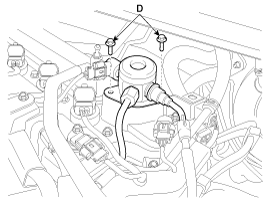 Открутите установочные болты (D), а затем снимите шланг высокого давления.