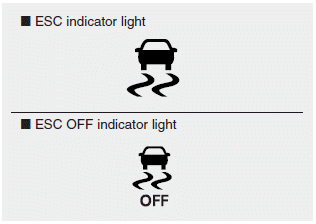 Когда ключ зажигания находится в положении ON, индикатор загорается, затем гаснет, если система ESC работает нормально.