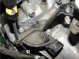 Ослабьте гайку (А) и снимите ручной рычаг (В).