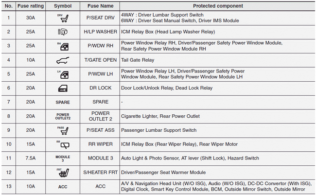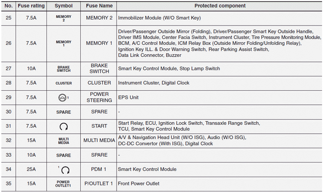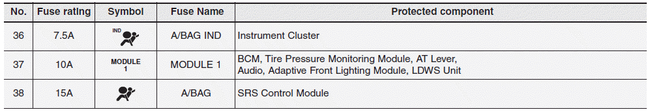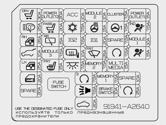 Фактическая этикетка на панели предохранителей/реле может отличаются от экипированных предметов.
