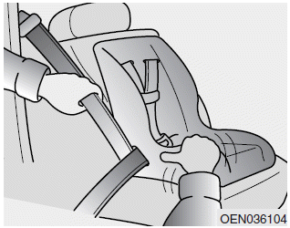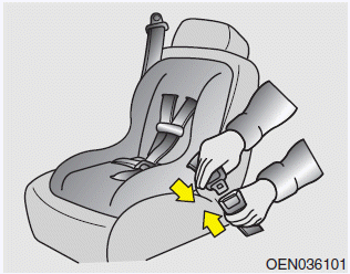 3. Пристегните ремень безопасности и дайте сиденью ремень, компенсирующий любую слабину. После установки системы безопасности для детей, попытайтесь двигайте его во всех направлениях, чтобы убедиться, что система безопасности для детей надежно установлен.