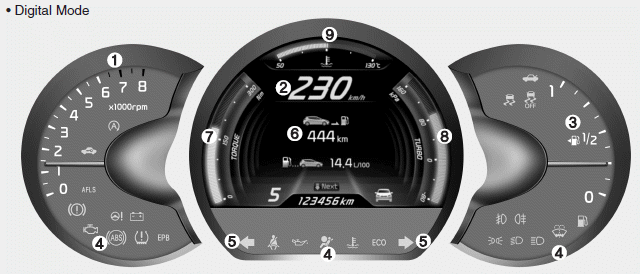 9. Указатель температуры охлаждающей жидкости двигателя.