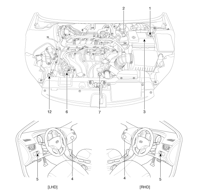 8. Нейтральный переключатель 9. Переключатель сцепления 10. Дверной выключатель 11. Выключатель ремня безопасности 12. Выключатель капота |