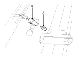 Снимите лампу лампы номерного знака (B) после извлечения патрона лампы номерного знака.