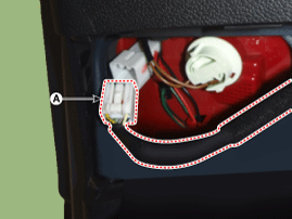 Отсоедините разъем заднего комбинированного фонаря (А).