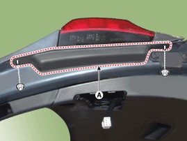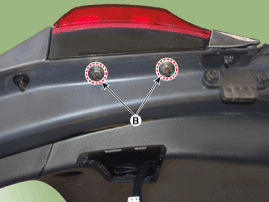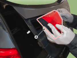 Снимите задний комбинированный фонарь (А) после ослабления гаек крепления.